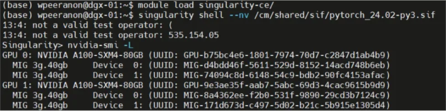 การรัน Singularity เพื่อใช้งาน GPU ให้ใส่ --nv ไว้ในคำสั่งเสมอ