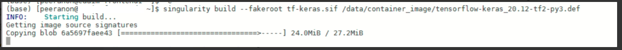 %post section, we include all the installation commands that are executed only once during the image build process. In this case, we use pip install to install the following Python packages:datasets, accelerate, grad-cam, captum, 'transformers[torch]', and opencv-python./data/users/peeranon/corneal/corneal_data is bound to /data inside the container./data/users/peeranon/corneal/fine_tuning_the_vision_transformer_on_nerve.py is bound to /work_scripts.To build the image, you can run the following command, specifying the --fakeroot flag along with the paths for the image file and the Definition file: